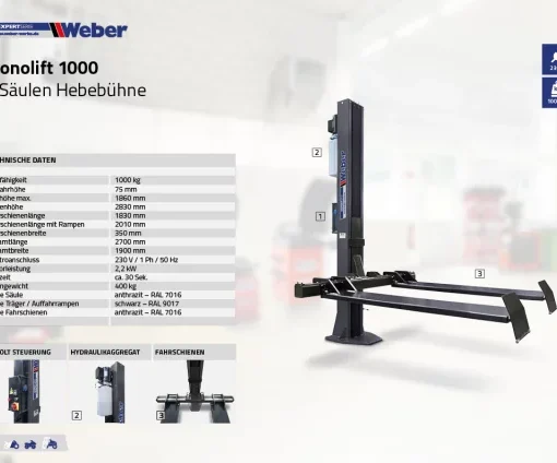 - 1 Säulen Hebebühne für Rasentraktoren, Quads und Sonderfahrzeuge