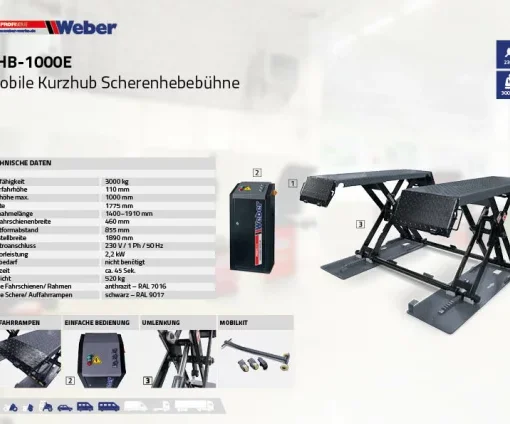 - Mobilkit zum einfachen Verschieben der Hebebühne