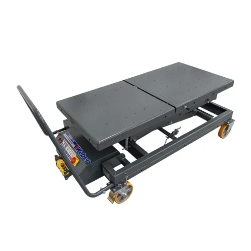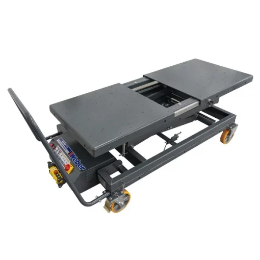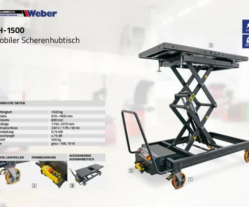 Der elektrohydraulische Batteriehubtisch SH-1500 ist durch seine hohe Traglast und maximale Hubhöhe der ideale Helfer zum sicheren Aus- und Einbauen von Motoren, Getrieben, HV-Batterien oder kompletten Chassis Komponenten. Die Höhenverstellung des Aufnahmetisch erfolgt durch eine Kabelfernbedienung mit der das am Hubtisch verbaute Hydraulikaggregat feinfühlig gesteuert werden kann.