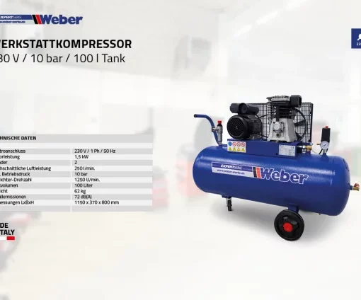 WERKSTATTKOMPRESSOR 230 V / 10 BAR / 100 L TANK - Weber werkstatt