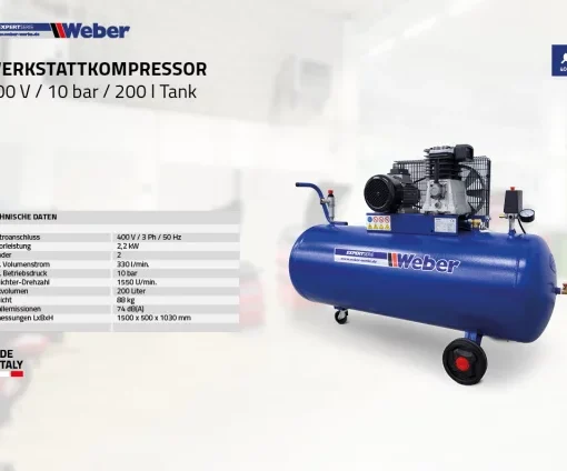 - Werkstattkompressor 400 V / 10 bar / 200 l Tank